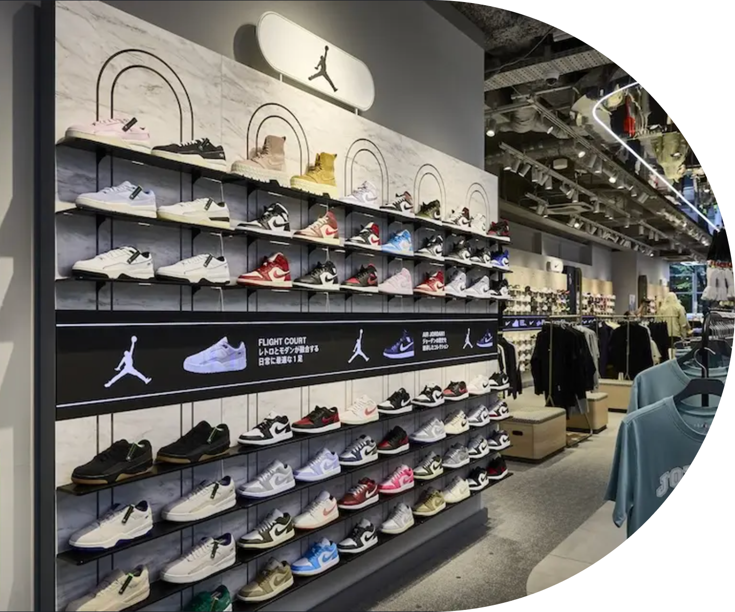 A special area has been created featuring a wide selection of "JORDAN," a Nike brand with fans across all generations. Starting with the Air Jordan series, which debuted in 1985, we have a wide range of products available, from shoes to apparel.